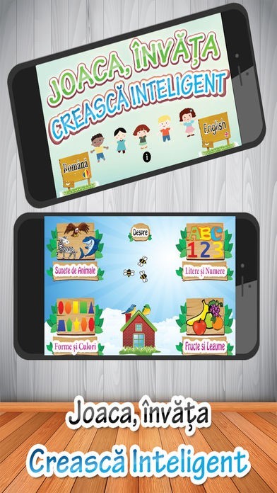App Storeより引用Joaca, învăța, crească inteligent. Este un joc educativ, care ajută copiii să învețe ABC, numere, forme, fructe, legume, culori, animale prin atingere și auz.