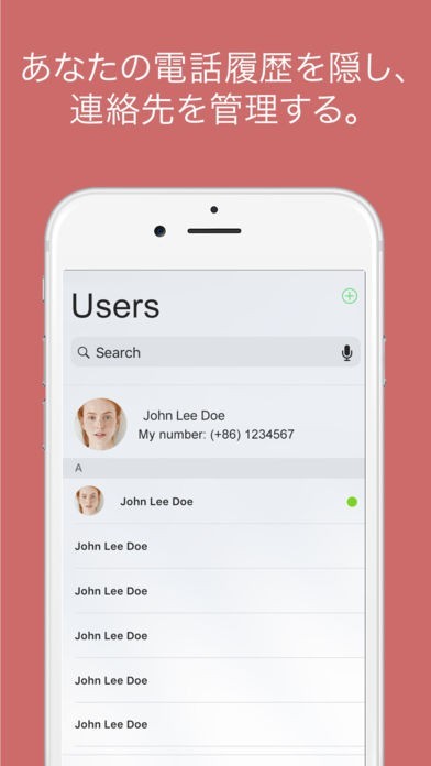 同アプリを使っている人の連絡先を登録することができ、4桁のパスワードがないと閲覧できません。着信や発信の履歴も残らないので、他の人にスマホを覗かれてしまっても大丈夫です。