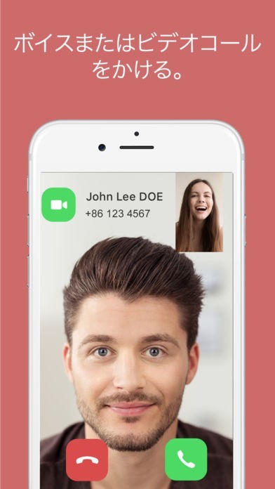 声のみだけでなく顔を見ながらのビデオ電話も掛けることもでき、自由な通話方法を選択して実用できます。通話時は相手だけでなく自身が写るビデオも上部に二画面として再生できます。