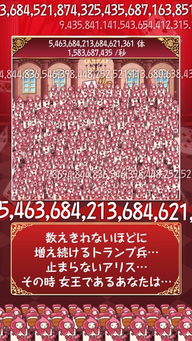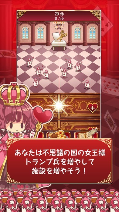 ハートの女王様視点で楽しむ完全無料の無限放置育成ゲーム。