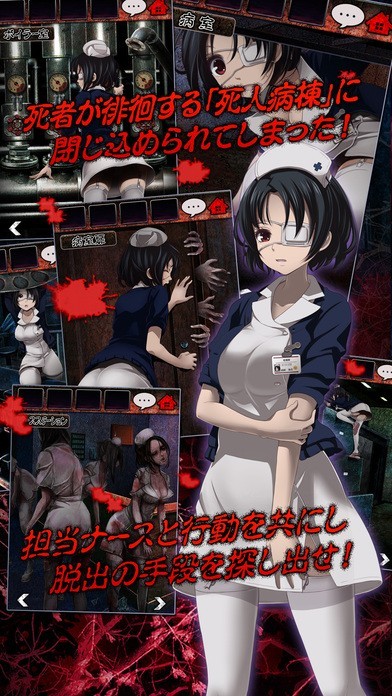 閉ざされた心霊病院から担当看護師と協力して脱出を目指します。幽霊など怖い話しのシナリオ好きな方も楽しめる脱出ゲームです。また、シナリオを背筋も凍るようなBGMで演出し盛り上げてくれます。