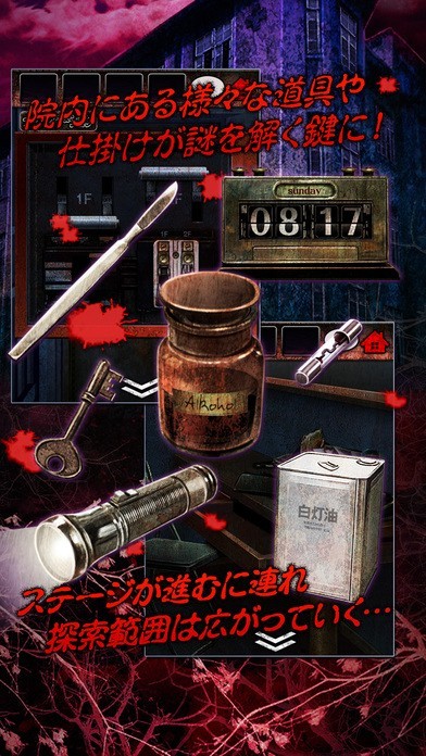 謎解きやアイテムを集めながら病院からの脱出を目指します。エンディングは豊富なエンディングを用意しているため、脱出ゲーム初心者から上級者まで幅広く楽しむことができます。