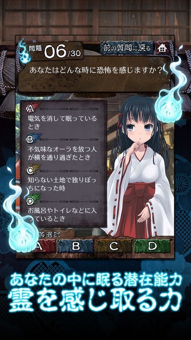 「霊感診断」では、30問にA、B、C、Dの中から選択するだけ