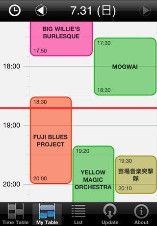 マイテーブル機能搭載。お気に入りの出演者を組み込んで自分だけのタイムテーブルを作成!