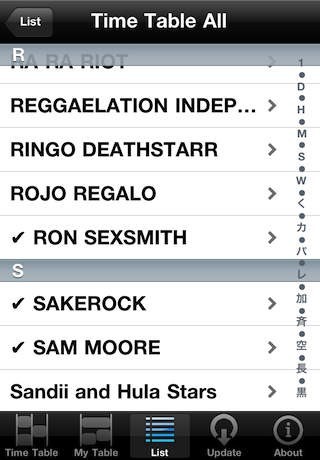 「FRF11TT」は、「Time Table」を見ることができることから、どの時間にどんなアーティストが参加しているのかを把握することができます。 参加するアーティストによるさまざまなジャンルを取り扱っており、それらの方々の情報を得ることができます。 これによって、あらかじめ予定を立てたりすることもできます。 さらには、「My Table」では自分が見る予定のものを記載しておくことができることから当日はそれを見ながら行動することで、迷うことなく移動するといった使い方をすることができます。 他には「List」で参加アーティストの一覧を見ることができるので、知らない場合にはこれを機会に詳しく調べたりといったことにも使用できます。
