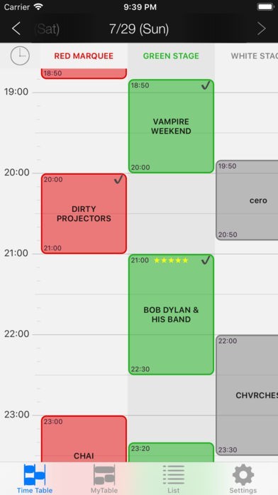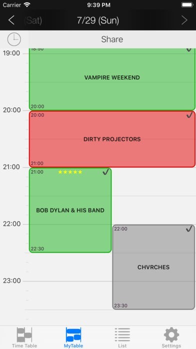 好きなアーティストのタイムテーブルをまとめて逃さないようにできる