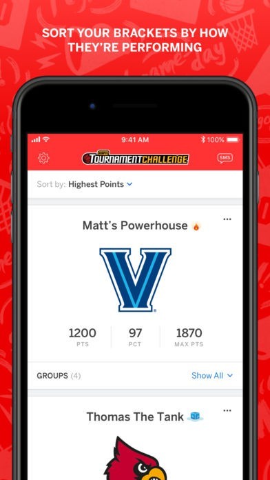 * Easily sort your brackets by score to keep tabs on your best.. And to push those busted ones out of view!
