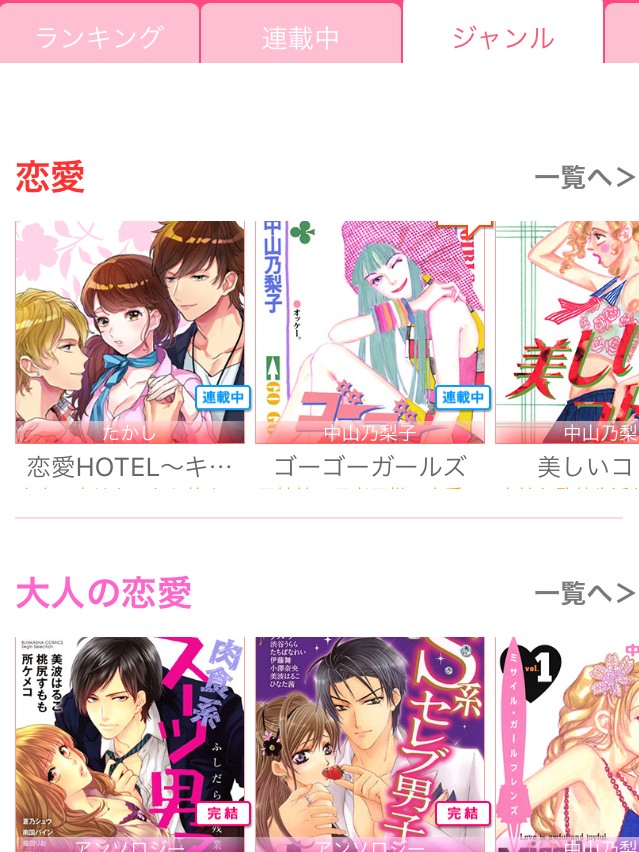こちらでは、全ジャンルの中で最も人気のある作品の順位付けがされており、アプリでコミックを楽しむ際の参考になりますよ。