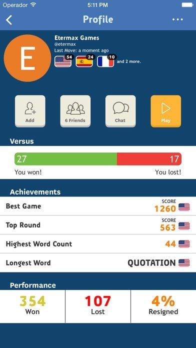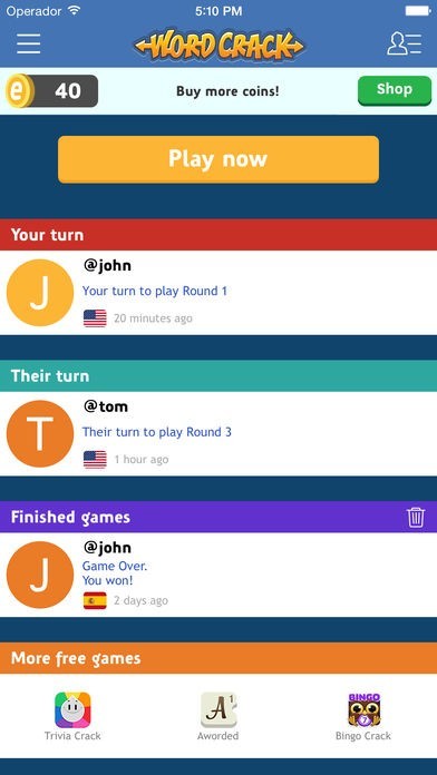 Word Crackは12ヶ国語で利用可能です。スペイン語、アメリカ英語、イギリス英語、カタロニア語、フランス語、ドイツ語、イタリア語、オランダ語、スウェーデン語、ポルトガル語、ブラジルポルトガル語、そしてさらに、バスク語にも対応しています。またFacebookで繋がり対戦することも可能です。