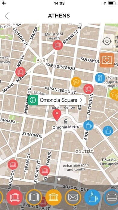 歴史的な建造物が多数残るギリシャのアテネへ海外旅行を予定している人に役立つ機能が満載のアプリとなっていて、観光スポットやバス停などをまとめてマップに表示できます。