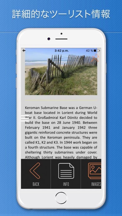 この旅行ガイドはオフラインでも使用できます。インターネット接続が不要なので、余分な携帯電話料金の請求の心配もありません。