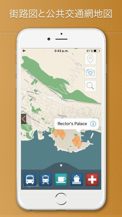 eTipsの旅行ガイドは他のガイドと違い、観光スポット、バス停、レストラン、パブ、病院、その他の役に立つ場所を表示できるズーム可能でインタラクティブなオフライン地図(x6 ズーム + GPS 機能)を提供しています。このアプリがあれば迷子になる事はありません!目的の都市を訪れるだけでなく、その周辺の地域を簡単に移動することも出来ます。