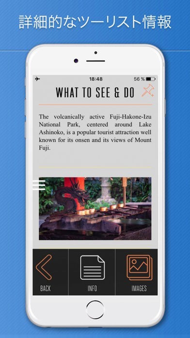 この旅行ガイドはオフラインでも使用できます。インターネット接続が不要なので、余分な携帯電話料金の請求の心配もありません。
