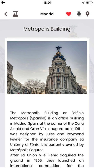 拡張現実。他の旅行ガイドとは違いこのアプリには、街を散策するのに便利なiPhone とiPadのツール(AR)が搭載されています。ARボタンをクリックし、360度回転すると、お勧めの観光スポットと行き方を表示してくれます。上下に画面をスクロールすることで、近くの観光スポットだけでなく、遠くの観光スポットも見ることが出来ます。