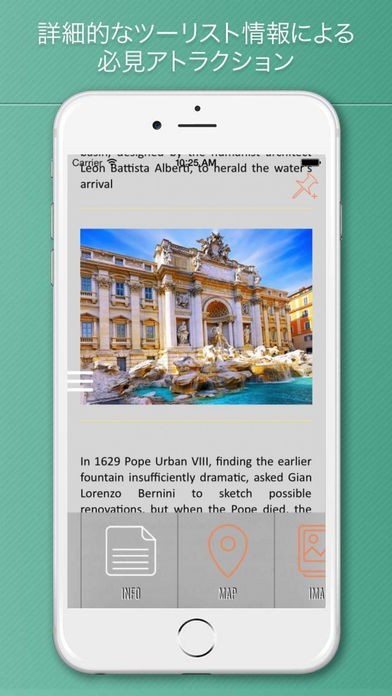 このアプリでは、イタリア・ローマに観光に来たらかならず訪れるべきスポット情報を数多く提供しています。旅行中だけでなく旅行に行く前に計画を立てるのにもこのアプリを使うことができます。