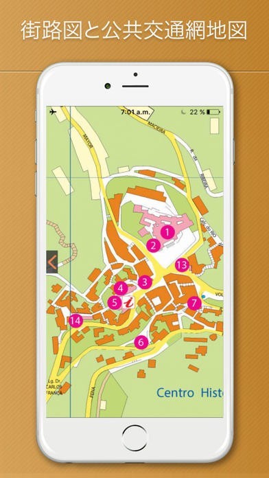 - GPS 機能 - 地図上でバス停、レストラン、パブ、ホテル、病院、美術館、劇場などを表示するインタラクティブな観光スポット