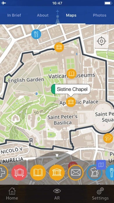AUGMENTED REALITY, unlike other tourist guides you will be able to discover the city with the best iPhone tool - AR - Just click on the AR button, turn yourself 360° and view on the screen where the best spots are and how to find them. You can also scroll up and down to view the closest and furthest attraction. Slide through the tutorial for more tips.