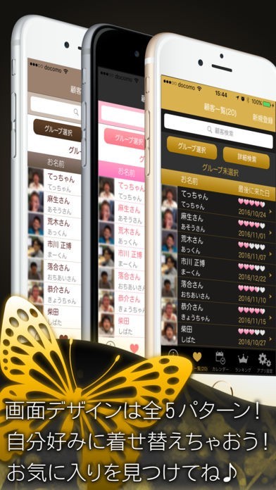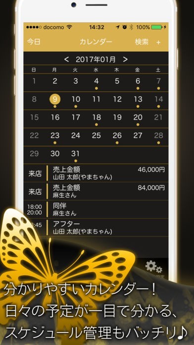 夜のお仕事を頑張っている女性必見! 「夜蝶Diary」は、お店を訪れるたくさんのお客様の情報を管理してくれるアプリです。 顧客登録機能ではお客様の外見などの詳細も記入可能。連絡先と併せれば、どのお客様の情報なのかも判りやすくなります。 来店登録では来店ごとのオーダーなども記載できる他、アフター回数などでランキングの作成ができるのも使いやすいポイント! 名前や顔、会話など、つい判らなくなってしまいがちな情報もアプリでしっかり管理しちゃいましょう!