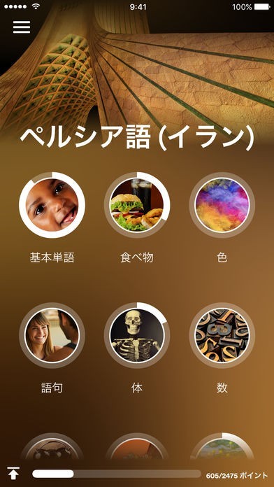 • ビジュアル – 美しい画像で単語とイメージを結び付け、脳の学習を加速させます。視覚を使って新しい言語の記憶を助けます。