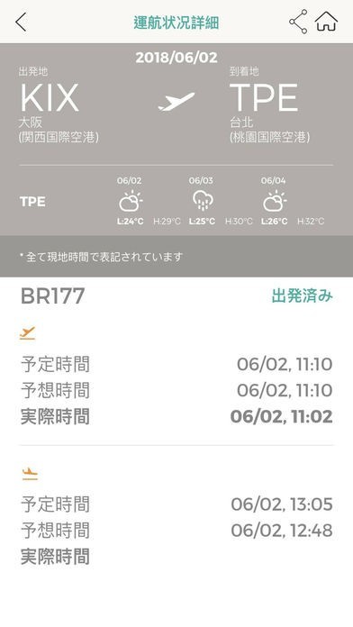 EVA Mobileでは航空便の予約はもちろん、飛行機の運行情報が確認でき、遅延なども分かるようになっています。また、気象状況による運休などの情報も知ることができるためこまめな確認がおすすめです。