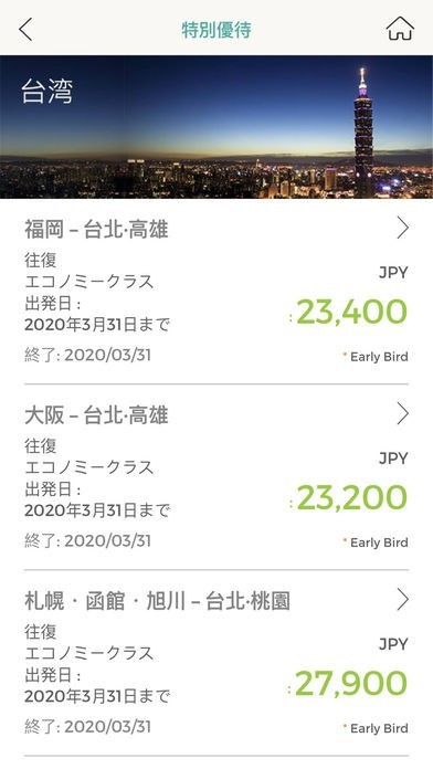 EVA Mobileではエバー航空の様々なキャンペーン情報が閲覧できます。また、マイル残高の確認も可能です。最寄りのエバー航空への連絡先を探す機能も用意されています。