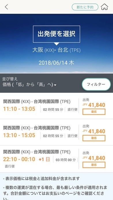 エバー航空の飛行機の予約ができる