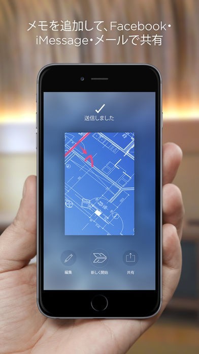 メモや注釈を書いた画像は、そのままワンタッチでシェアできます。メールでの添付はもちろん、SNSに投稿も可能。好きな部分にモザイクをかけることもできるので、プライベートな写真をアップしたいときにも便利です。