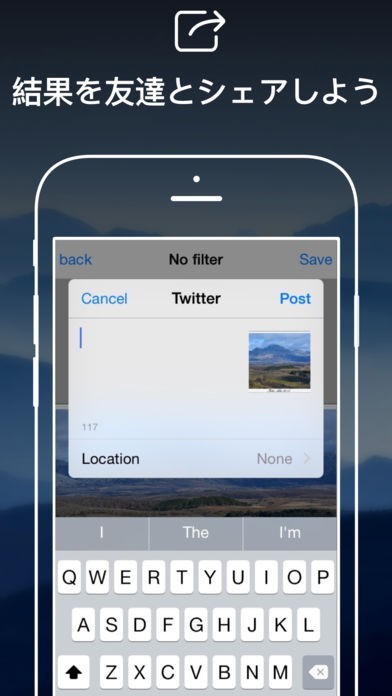 ズーム機能に特化しており、iphoneの標準カメラでは撮れないような写真を撮ることも出来ます。それによって、おもしろ写真から芸術的な写真まで多種多様な写真を撮ることが可能となるので、あとは撮影者のアイデア次第となります。また、その他にもいろいろなフィルタも用意されているので、様々な組み合わせによっていろいろな写真へと加工することが出来ます。また、ツイッターなどのSNSへも簡単に投稿することが出来るので、コミュニケーションも簡単にとれます。