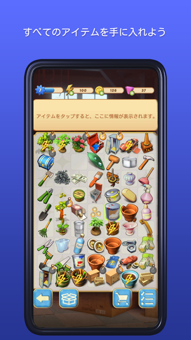 - 道具や花など、さまざまなアイテムを合体させてパズルをクリア!