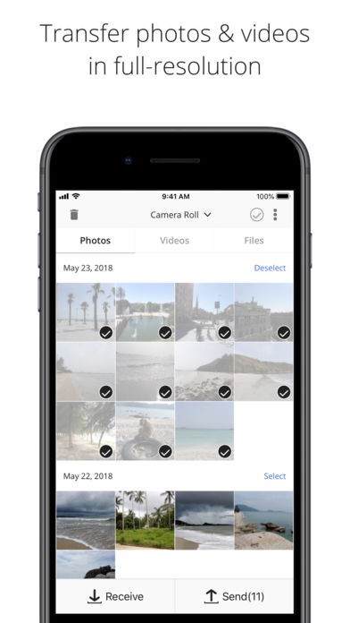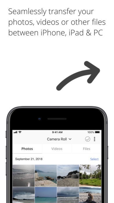• Free up space on your device, by moving your photos to another device (you can delete photos and videos from your iPhone inside the app)