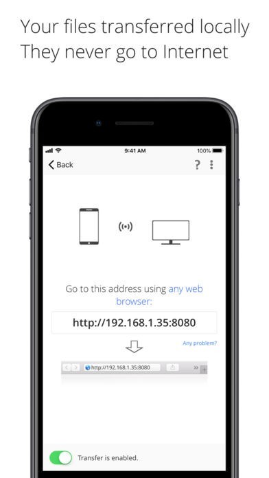• Your files are transferred directly from device to device over your local Wi-Fi network without the need for any external server