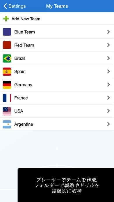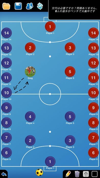 プレーヤーのチーム作成が簡単にできます。名前や背番号、顔写真とカスタムが自由なので、リアルでわかりやすいコーチタクティカルボードを作る事ができます。交代選手はドラッグアンドドロップで簡単に変更できるので、操作に煩わしさがなく戦略に集中する事ができます。