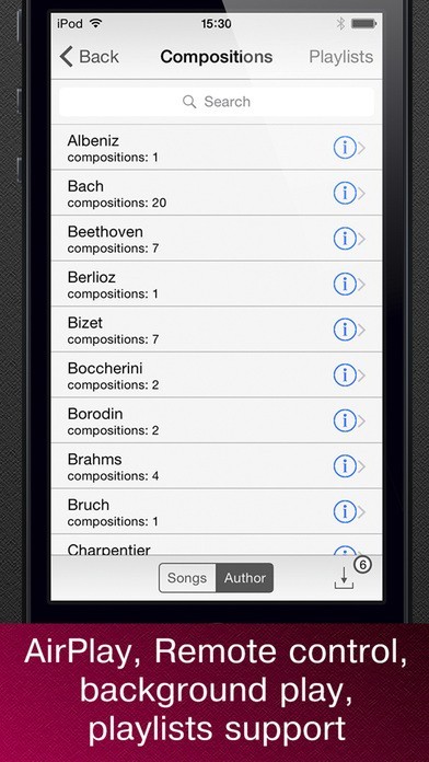 作曲家別に曲を再生できる機能があり好きな作曲家の曲だけ聴ける