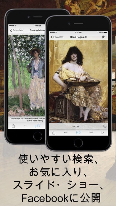 「メトロポリタン美術館 HD」をインストールすれば、アメリカのメトロポリタン美術館の作品をスマホで閲覧できます。iPhoneはもちろん、iPadで閲覧すれば、さらに美しく名画を鑑賞することができます。