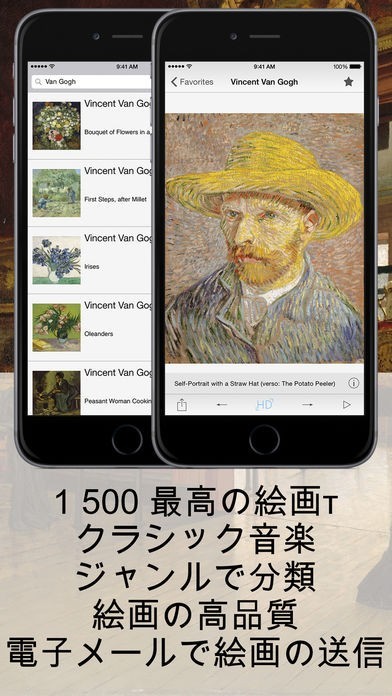 このアプリでは、約1500点もの著名な絵画を見る事が出来ます。また、画家数も500人を超えており、幅広いジャンルの中から自分が見たい作品を見つける事が出来ます。
