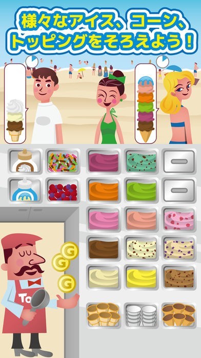 App Storeより引用天気のいい日は、トニーのアイスクリーム屋さんが、イタリアのとあるビーチでオープンしています。