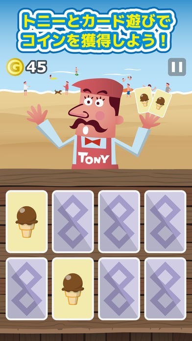 ●トニーとカードでは、同じ絵柄のアイスカードを選ぶとコインを獲得できるよ。