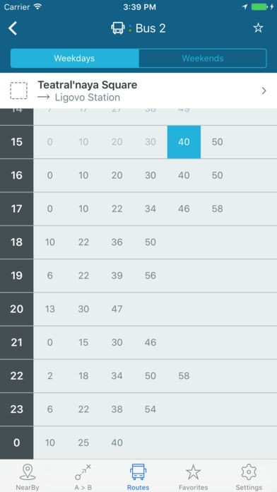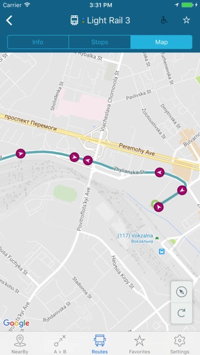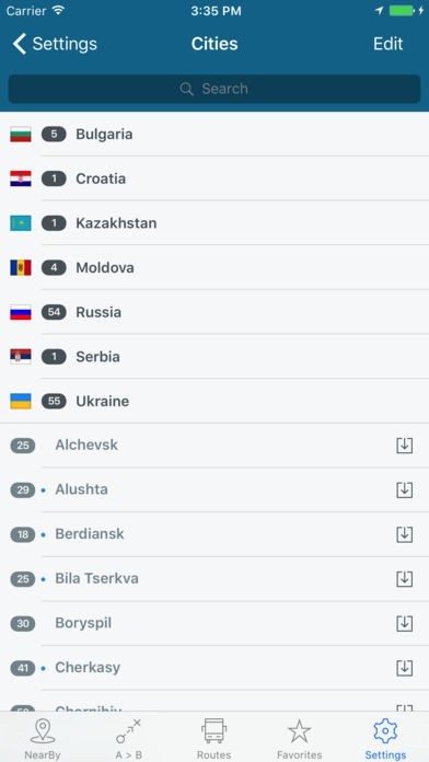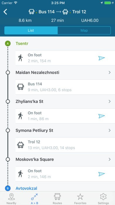 - Full list of current public transport routes, display-on-the-map possibility in the provided cities