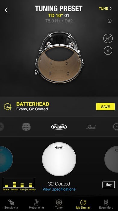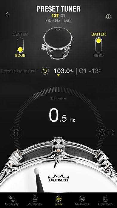 携帯電話でドラムを完璧なピッチにチューニングしてくれるので便利