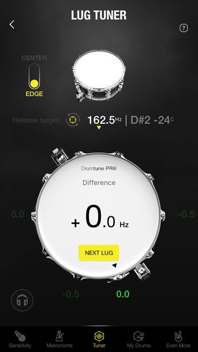 ラグのピッチの違いを全て記録してどのロッドを上下に調整してヘッドテンションを均一にする必要があるか効率的にチェックできるのが良いです。スマホを使っていつでもドラムのチューニングができて便利です。