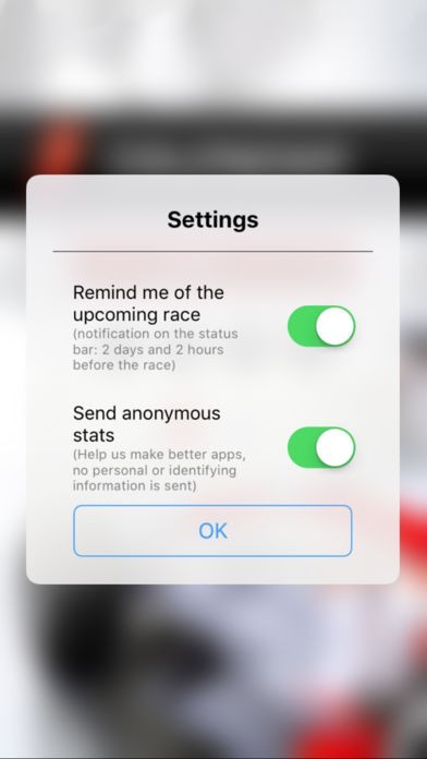 - グランプリの週末前と日曜日のレース前に2時間金曜日に:アプリケーションの無料版は、レースを彷彿させるオプションを提供します。