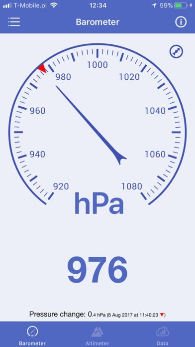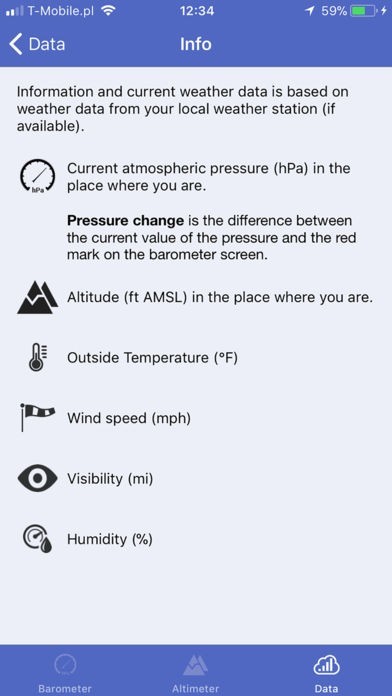 警告!ポータブルデバイス(タブレット、電話、スマートフォン)には、内蔵の圧力センサーがありません。これらの装置では、地元の気象ステーションのデータに基づいているため、測定値はそれほど正確ではありません。