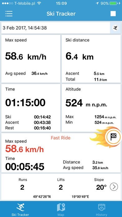 App Storeより引用スキートラッカー - スキートラッキングは、雪や冬のスポーツを愛するすべての人のためのアプリケーションです。スキーヤーやスノーボーダーに便利です。スキーの最高速度、トラック、距離を測定し、地図上の斜面に印を付け、冬のスポーツ活動の完全な統計情報を提供します。