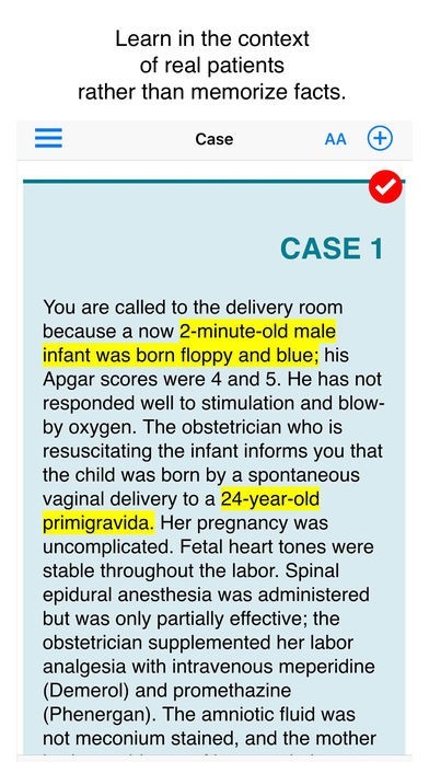 This free application includes 1 sample case study from the 60 that are available through an in-app purchase of $34.99 of Case Files Pediatrics.