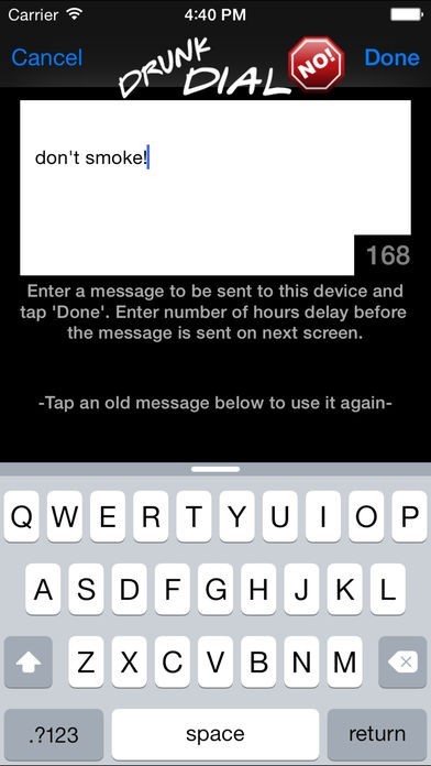 作成ボタンからご自身の機種に送るメッセージを作成して7時間先まで送信時間を設定できます。自主的に迷惑行為を防ぐことをFacebookなどで友人に理由を伝えて共有できます。