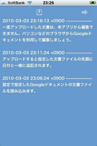 メモを書くことのみに集中することができる、単機能アプリです。機能はまさに「メモを書く」ただそれだけです。他に無駄な機能は一切なく、シンプルな操作だけで使用することができます。単機能だけに、その動作は快適でストレスフリーでの操作が可能です。アプリ使用の際はGoogleドキュメントのアカウント登録が必要です。登録さえすれば、書いたメモはGoogleドキュメントに保存されることになり、そこで様々な編集が可能になります。とりあえずメモを書き残しておきたいという人にオススメのアプリです。