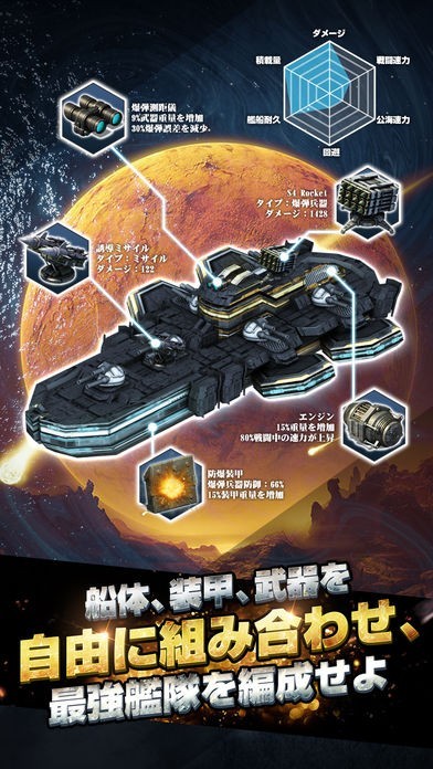 艦船は船体・装甲・武器を自由に組み合わせて建造することができるので、重火器搭載の艦船や魚雷を多く搭載した艦船など、好みの性能にカスタマイズしていくことが可能です。