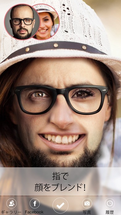 ◉ スワイプして二つの顔をブレンドする