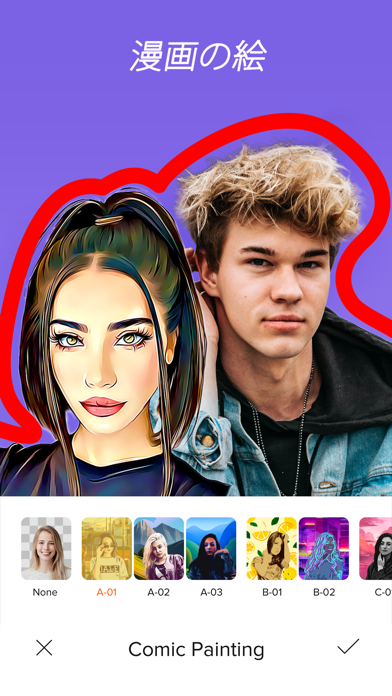 魅力的でユニークで芸術的な漫画効果。新規または既存の写真に芸術的効果を適用します。写真を漫画、スケッチ、油絵、鉛筆画に変換します。