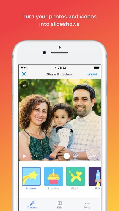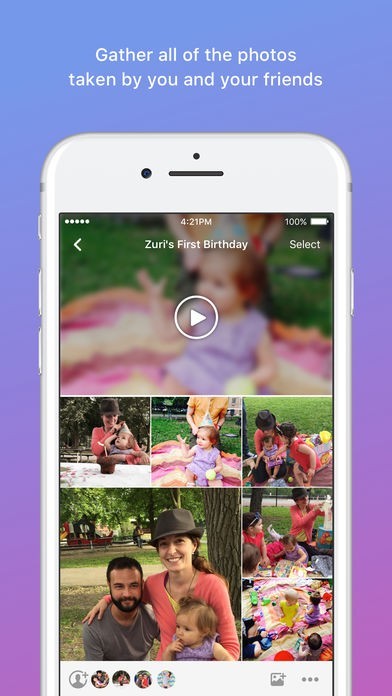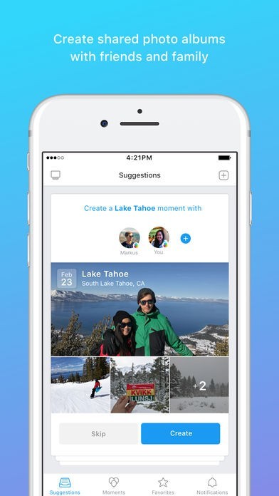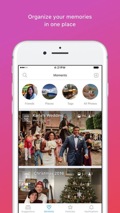 このアプリは、顔認証機能が搭載されており、一緒に写っている人でグループ化してくれ同期できる仕組みになっています。グループ化した後はアルバム作成のサポートまでしてくれるので、結婚式や旅行の時に便利でしょう。共有された写真は非公開で保存されますので、セキュリティ面も安心です。集まった写真はFacebookでスライドショーとして流すこともできるので、思い出作りにぴったりです。BGMもバッグで流すこともできます。友人や家族と共有のアルバムを作りたい方は重宝するでしょう。